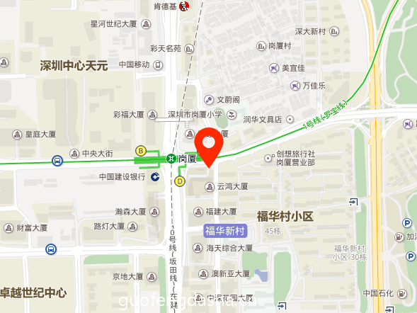 附近的地铁站: 距离地铁1号线岗厦站99米 附近的公交站: 福华新村公交站122米途经公交车:3路 4路 9路 14路 38路 62路 63路 103短线 103路 202路 203路 303路 313路 316路 317路 339路 357路 377路 385路 391路 m194路 m224路 m370路 m433路 n10路 高峰专线95路 高快巴士95路 彩福大厦公交站223米途经公交车:4路 14路 80路 103短线 103路 202路 203路 303路 313路 357路 375路 391路 m115路 m194路 m221路 m223路 m329路 m389路 m521路 高峰专线14路 高峰专线15路 高峰专线71路 高快巴士27路 岗厦村公交站228米途经公交车:4路 103短线 103路 202路 203路 303路 313路 317路 339路 357路 377路 385路 m204路 m370路 m389路 m433路 m476路 高峰专线3路 岗厦地铁站公交站304米途经公交车:3路 9路 38路 62路 63路 80路 316路 375路 e20路 m221路 m223路 m224路 m329路 m521路 n10路 高峰专线95路 高快巴士27路 高快巴士95路 财富大厦公交站460米途经公交车:80路 m521路 岗厦北地铁站②公交站589米途经公交车:4路 101路 103路 202路 203路 204路 m106路 大中华国际交易广场公交站602米途经公交车:k578左环 大中华国际广场公交站606米途经公交车:34路 38路 60路 64路 371路 373路 398路 e38路 k578左环 m347路 m390路 m454路 m459路 m500路 n9路 高峰专线17路 高快巴士26路 福华三路口公交站607米途经公交车:34路 60路 62路 63路 80路 371路 m133路 m347路 m390路 m500路 m521路 n10路 n9路 高峰专线14路 高快巴士26路 岗厦②公交站614米途经公交车:103短线